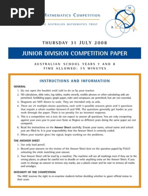 Amc Junior Division 2008 Paper Pdf Teaching Mathematics Science